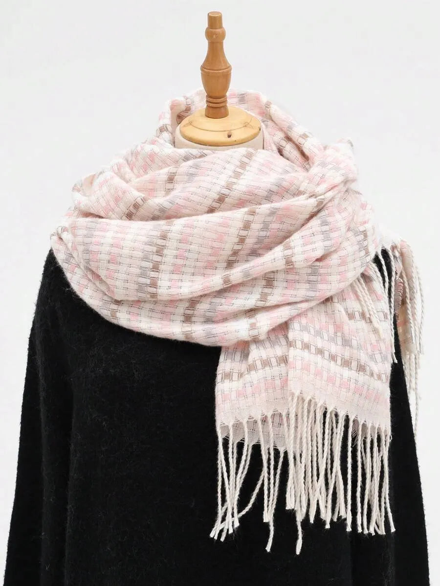 1pc Fringed Long Scarf For Women, Evening Dress Shawl With 1 Shiny Flat Buckle